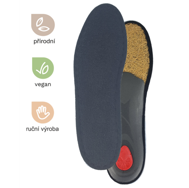 Anatomický tvar s měkkým flexibilním polštářkem podporuje současně příčnou i podélnou klenbu.